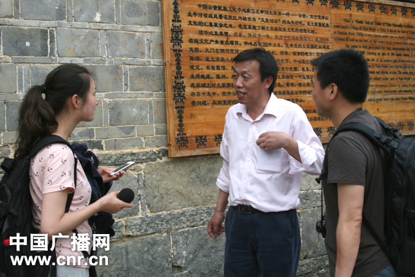 中央臺“走轉(zhuǎn)改”系列報(bào)道“傾聽貴州”采訪團(tuán)成員,中央臺中國之聲總監(jiān)蔡小林(中)現(xiàn)場部署報(bào)道方案。