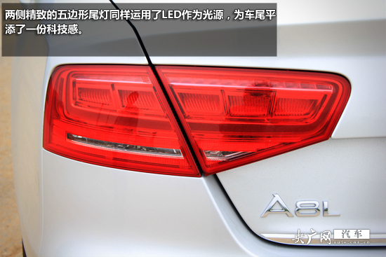 “并不很‘官車’”包含了兩層意思。首先,從A8L的定位來講,其車身整體線條并沒有經(jīng)過夸張的設(shè)計,給人以沉穩(wěn)的感覺,這是屬于“官車”的性質(zhì);第二,某些細節(jié)上,A8L的處理頗為犀利,甚至有些運動風,在這個越來越傾向于后續(xù)社會的時代,這種設(shè)計或許會俘獲更多年輕富豪的心。