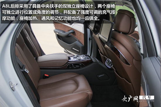 話說回來,對于A8L這樣一臺車,后排“老板座”上的配置顯得更為重要,畢竟擁有這款車的人更傾向于給自己配備一名司機而不是親自駕駛。A8L后排采用了具備中央扶手的雙獨立座椅設(shè)計,兩個座椅可獨立進行前后位置或俯仰角度的調(diào)節(jié),并配備了強度與模式組合可調(diào)的充氣按摩功能,前排擁有的加熱、通風和記憶功能也均一應(yīng)俱全。