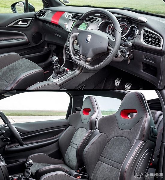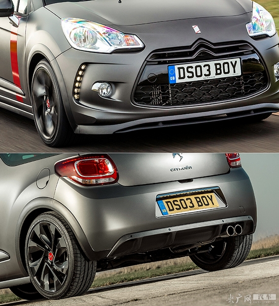 DS3敞篷Racing限量版是基于雙門DS3 Racing版打造的,外觀上對比普通版,紅色條紋涂裝和磨砂漆面,而高度也降低了15mm,長度增加了30mm。18英寸的輪轂與黑色纖維車頂不但帶來更運(yùn)動化的外觀,還在一定程度上增加了操控性。