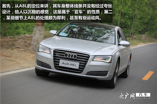 “并不很‘官車’”包含了兩層意思。首先,從A8L的定位來講,其車身整體線條并沒有經(jīng)過夸張的設計,給人以沉穩(wěn)的感覺,這是屬于“官車”的性質(zhì);第二,某些細節(jié)上,A8L的處理頗為犀利,甚至有些運動風,在這個越來越傾向于后續(xù)社會的時代,這種設計或許會俘獲更多年輕富豪的心。