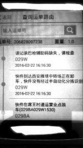 華商報(bào)記者從順豐管理系統(tǒng)之一的“查詢運(yùn)單路由”中看到,物品從西安到廣州都屬于正常,但2月22日16:16記錄顯示,“巴槍輔助碼缺失,請(qǐng)檢查”。2月23日,在“投訴歷史”中記錄,“此件在我辦自動(dòng)化解包時(shí)發(fā)現(xiàn)異常,快件外包裝破損,內(nèi)用氣泡膜包裹一個(gè)首飾盒,盒內(nèi)無物品,已正常上報(bào),請(qǐng)跟進(jìn)”。
