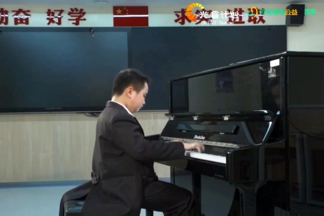 11歲的張鈺城來自南京。他是陶勇第一例幼兒白血病骨髓移植后繼發(fā)巨細胞病毒視網(wǎng)膜炎的患者,學習鋼琴多年,從咿呀學語的嬰兒到如今獲獎無數(shù)的琴童,陶勇一路見證著城城的成長;盛原老師,是中央音樂學院的鋼琴系教授,在日常教學的過程中也接觸并培養(yǎng)出了幾位優(yōu)秀的盲童琴手。盛老師發(fā)現(xiàn),盲童們對音樂的敏感是有異于常人的天賦的。經(jīng)過六七年的“即興演奏”培訓練習,盲人琴手完全可以從事公共場所音樂演奏師這一職業(yè),自力更生、體面生活。未來,他將聯(lián)合“光·盲計劃”,為推動盲童器樂學習、樂團公益演出、實現(xiàn)就業(yè)這一閉環(huán)模式而持續(xù)努力。