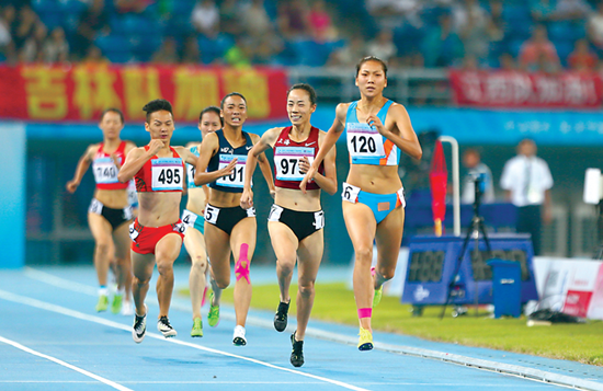 9月6日晚,第十三屆全運(yùn)會(huì)田徑女子800米決賽在天津奧林匹克中心體育場(chǎng)舉行,我省運(yùn)動(dòng)員王春雨(120號(hào))以2分3秒49的成績(jī)獲得冠軍。