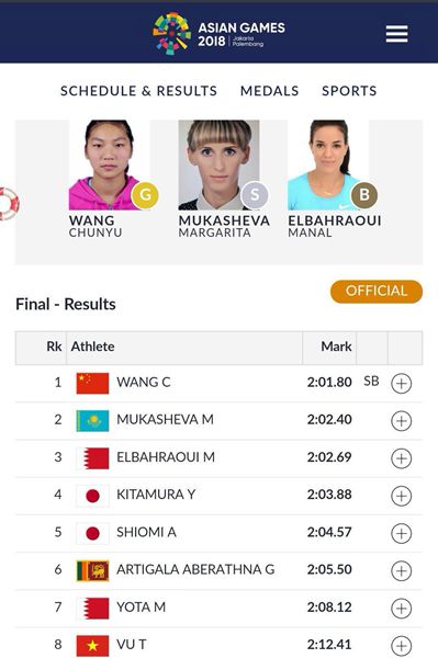 在本場比賽中,王春雨在最內道出發(fā),整場比賽表現(xiàn)得非常主動,一直以大幅度動作控制內道,處于領先地位,最終率先沖過終點,拿下冠軍。衛(wèi)冕冠軍、哈薩克斯坦選手穆卡舍娃2分02秒40獲得銀牌,巴林選手埃爾巴赫拉奧尤2分02秒69獲得銅牌。