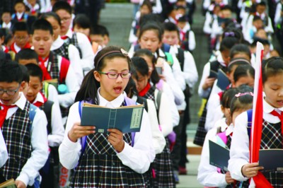 “北冥有魚,其名為鯤!标柎喝隆⒔(jīng)典誦讀,昨日在安徽名人館東門廣場上,600多名小學(xué)生在這里齊聲誦讀詩詞,包括《道德經(jīng)》、《觀滄!、《木蘭辭》、《紫陽朱子家訓(xùn)》在內(nèi)的詩詞,均與安徽歷史名人有關(guān)。安徽名人館負(fù)責(zé)任人透露,下一步名人館將進(jìn)一步打好文化牌,計(jì)劃在一樓展廳新建蠟像館,展示安徽歷史名人,增強(qiáng)展館的互動(dòng)性、形象性。
