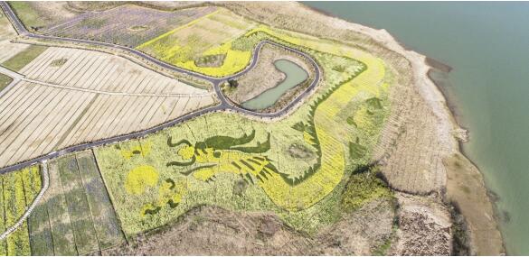 據(jù)市場星報消息 時下正值油菜花盛開時節(jié),在安徽省合肥市半島環(huán)博園,主辦方用白色油菜、黃色油菜以及小麥等農(nóng)作物種植出一個“中國龍”圖案,“中國龍”蜿蜒盤旋在合肥市董鋪水庫岸邊,從空中俯瞰,蔚為壯觀,成為一道亮麗的風(fēng)景。