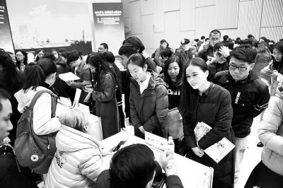 2019年北京市通州區(qū)走進高校英才選聘活動在清華大學舉行,參加選聘會的學生爭相投遞簡歷,與用人單位交流。本報記者和冠欣 攝