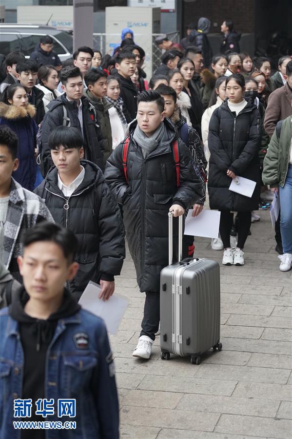 2月27日,在北京電影學(xué)院,參加藝考的考生在等候進(jìn)入考場(chǎng)。新華社記者 沈伯韓 攝