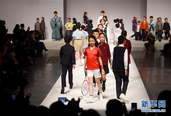 北京市中小學校服研發(fā)成果展示活動在北京服裝學院舉行。本次活動的動態(tài)展演部分分為“青·萱”“純真年代”和“安全出‘型’”三個系列,共展出80多套校服。