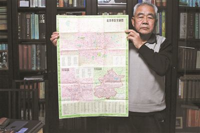 北平解放時(shí)的第一張地圖《最新北平大地圖》、1950年的《中華人民共和國(guó)大地圖》《亞洲人民反帝斗爭(zhēng)圖》……北京收藏家協(xié)會(huì)常務(wù)理事、70多歲的魏有華老人書房的墻面,幾乎被裝著鏡框的老地圖填滿。為便于讀圖,魏老將一張正方形餐桌改造成閱圖平臺(tái),臺(tái)面上是厚厚的幾摞老地圖。自1981年從地?cái)偵匣?毛錢買下的1971年《北京交通圖》開始,至今魏老已收藏地圖3000余件套。接受北青報(bào)記者采訪前,他將一張有40年歷史的《北京市區(qū)交通圖》放在了最上層。