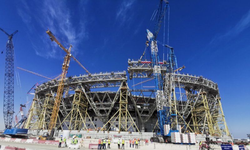 央廣網(wǎng)北京2月16日消息(記者郭淼)北京時(shí)間2月16日16:00,中國鐵建承建的2022年世界杯主體育場——盧賽爾體育場項(xiàng)目主體鋼結(jié)構(gòu)吊裝完成,建筑的“馬鞍形”外觀基本成型,實(shí)現(xiàn)重大施工節(jié)點(diǎn)突破。