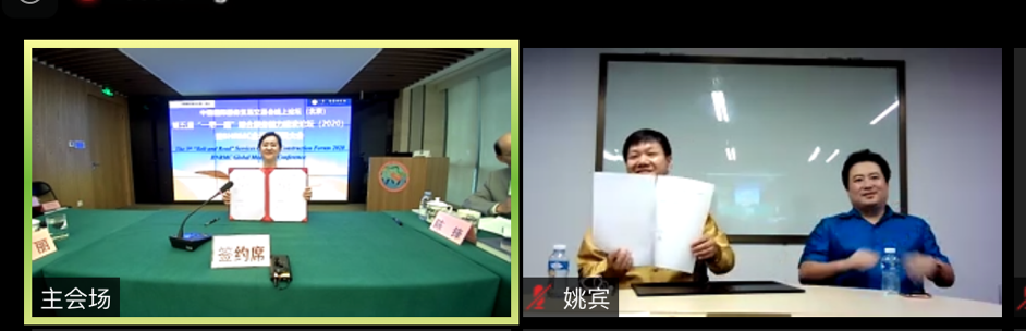 北京融商一帶一路法律與商事服務(wù)中心與老撾中華總商會線上簽約(央廣網(wǎng)發(fā) 主辦方供圖)