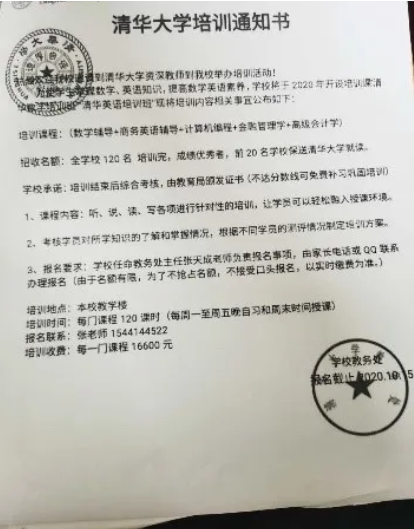 騙子偽造的清華大學培訓通知書(圖片來源:江蘇警方微信公號)
