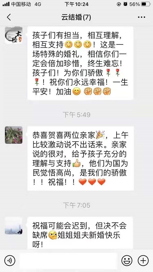 “云”結(jié)婚微信群里家人的祝福(受訪者供圖)
