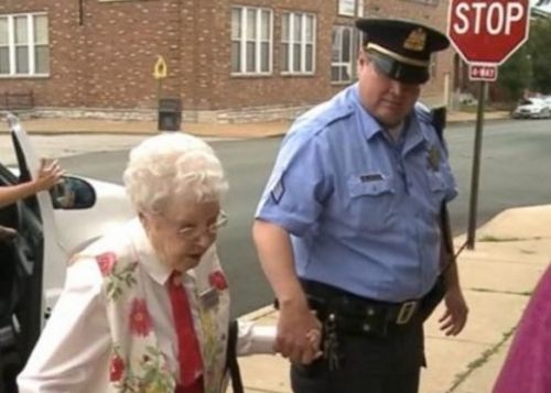 美國密蘇里州一位102歲的老婦人西蒙斯上周被警方逮捕,帶著手銬坐進(jìn)了警車后座。不過,西蒙斯并未犯罪,這只是為了滿足她坐警車的心愿。