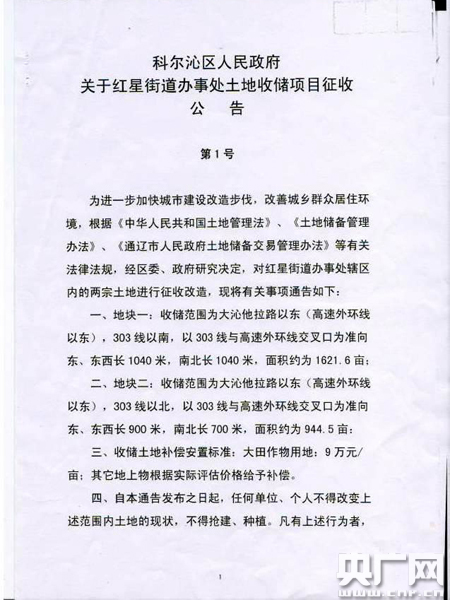 新聞鏈接:科爾沁區(qū)村民疑有關(guān)部門違規(guī)征地 9000萬(wàn)補(bǔ)償款去向成迷