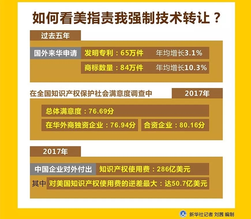 針對美國多次指責中國政府強制技術(shù)轉(zhuǎn)讓,商務部副部長兼國際貿(mào)易談判副代表王受文表明,在我國現(xiàn)行法律法規(guī)、政策文件中,沒有強迫外國企業(yè)把技術(shù)轉(zhuǎn)讓給中國企業(yè)的要求。為了防止政府機關(guān)對外企施壓,要求其轉(zhuǎn)讓技術(shù)給中方企業(yè),今年國務院還專門發(fā)文要求各級政府不得利用行政手段強制技術(shù)轉(zhuǎn)讓。