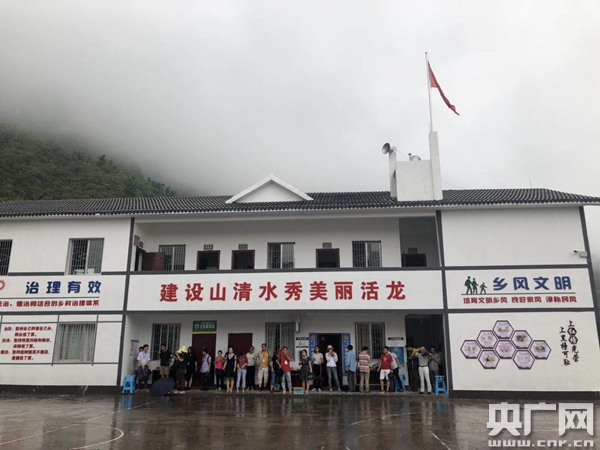 云陽縣盤龍街道活龍社區(qū)居民委員會整潔的辦公場地,由于下雨,當(dāng)?shù)卮迕裨谶@里向記者介紹他們的綠色發(fā)展新路子。(管昕 攝)