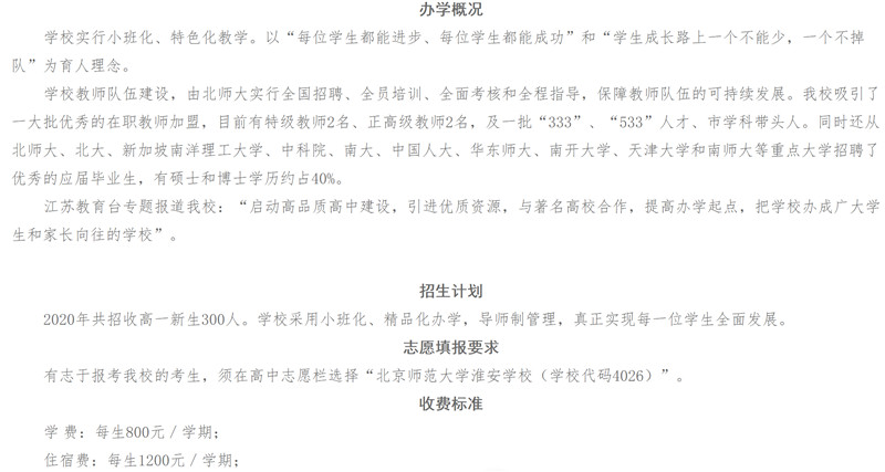 北師大淮安學(xué)校官方網(wǎng)站中寫到,學(xué)校是由淮安市人民政府、北京師范大學(xué)合辦,政府建校、北師大自主管理,集政府辦學(xué)的穩(wěn)定性和民辦學(xué)校的自主性于一體,是一所按公辦高中收費(fèi)標(biāo)準(zhǔn)運(yùn)行的民辦非營利性學(xué)校。