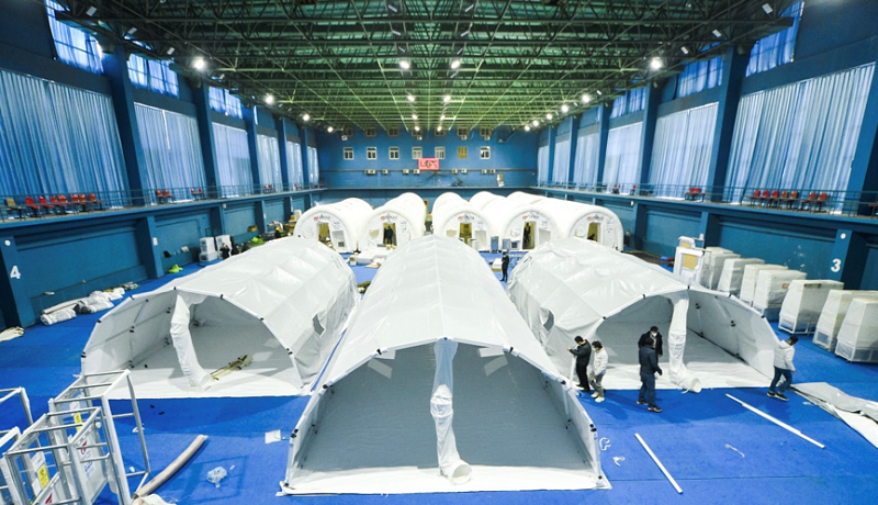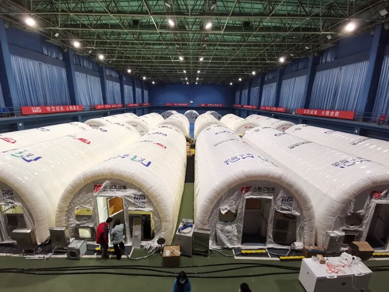 杜玉濤說(shuō):“它對(duì)場(chǎng)地有比較大的要求。通過(guò)吹氣,快速把實(shí)驗(yàn)空間搭建起來(lái),里面有負(fù)壓的設(shè)計(jì),(還可以滿足)空氣凈化的要求。所有分區(qū)都有嚴(yán)格的對(duì)實(shí)驗(yàn)人員的保護(hù)措施,以及對(duì)樣本的保護(hù),這些都是集成一體的。”