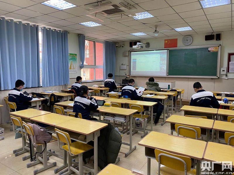 這次疫情將石家莊市一中的同學(xué)們分成了兩個(gè)部分,寄宿制學(xué)生繼續(xù)留在學(xué)校,實(shí)施封閉管理,而走讀的學(xué)生則回到家中,網(wǎng)上學(xué)習(xí)。不過,即便不在同一個(gè)教室,同學(xué)們依然共享同一個(gè)課堂。石家莊市第一中學(xué)校長婁延果介紹:“學(xué)校從6日早上7點(diǎn)開始就組織同學(xué)們?cè)诰W(wǎng)上進(jìn)行自習(xí)、早讀,一個(gè)班被分成兩部分,每一個(gè)同學(xué),無論是在家里還是在教室,同屏同時(shí)段按照過去的課表正常上課。實(shí)際上等于實(shí)現(xiàn)了在不同的物理空間內(nèi),班里所有同學(xué)和老師之間相互在屏幕上都能看得到,而且能隨機(jī)交流。采用這樣的方式,我們也能最大限度營造這班同學(xué)還是在一起上課的氛圍!