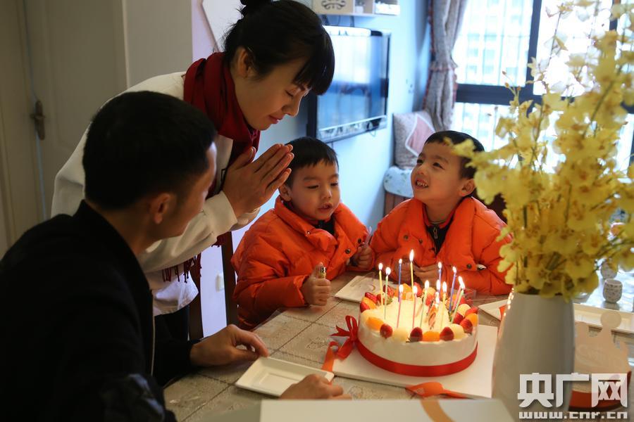 90后最美雙胞胎“辣媽”的第10個(gè)春運(yùn)(央廣網(wǎng)發(fā) 李娟攝) 客廳里,趙玲陪著雙胞胎看少兒節(jié)目,享受這難得的輕松時(shí)刻。電視里播放的,是倆兒子喜愛的動(dòng)畫片,因?yàn)閮鹤酉矚g,趙玲也看得津津有味。 廚房里,是家人為趙玲準(zhǔn)備生日餐的溫馨,都是趙玲喜愛的菜品?粗鴱N房里忙碌的背影,趙玲也加入其中。 哥哥和弟弟將蠟燭點(diǎn)燃,看著虔誠許愿的媽媽,弟弟笑的眉眼彎彎。一家四口將蠟燭吹滅的那一瞬間,趙玲笑得好幸福。 -