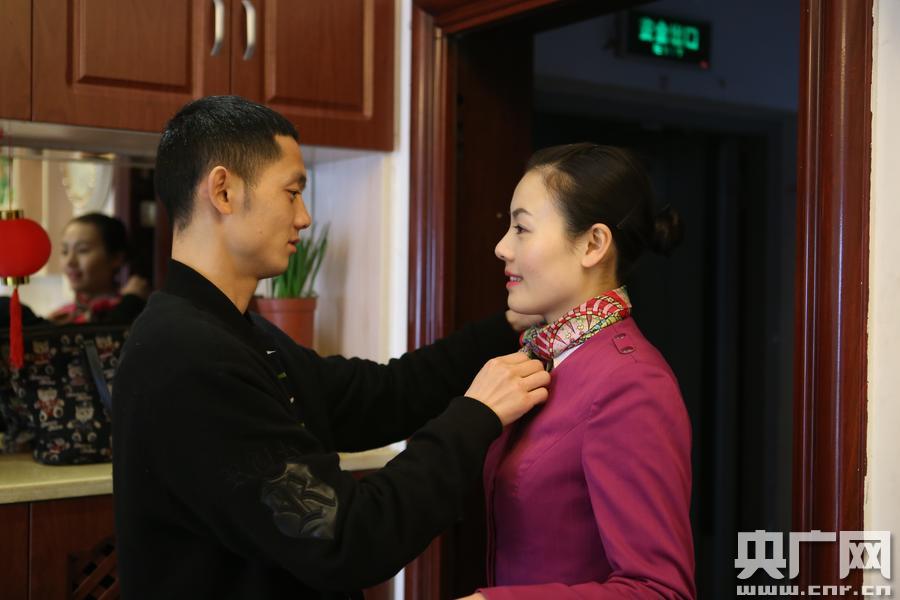 90后最美雙胞胎“辣媽”的第10個(gè)春運(yùn)(央廣網(wǎng)發(fā) 李娟攝) 明天就要出乘,今天下午5點(diǎn),趙玲就需要到車隊(duì)組織職工做好出乘學(xué)習(xí)和接車的準(zhǔn)備。穿上制服的那一刻,就要保持得體的妝容,對(duì)著,趙玲認(rèn)真的化妝。臨出門前,趙玲的老公細(xì)心、熟練的幫她整理好絲巾。 外面陽光正好,一家四口其樂融融的幸福,也如春日的陽光般和煦。 -
