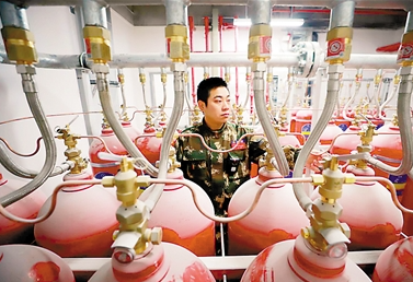 軌道消防支隊(duì)在檢測(cè)氣體滅火裝置