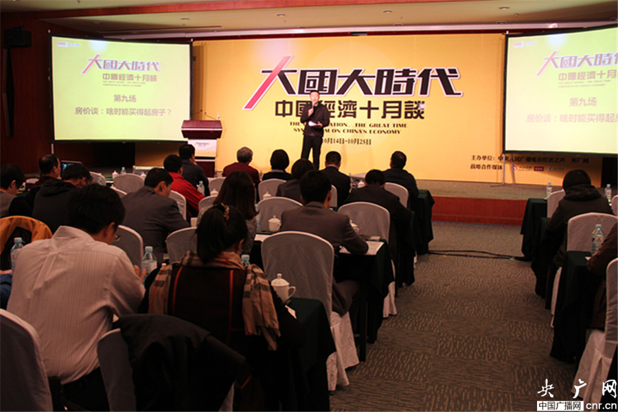 10月24日,由中央人民廣播電臺經(jīng)濟(jì)之聲、央廣網(wǎng)主辦的《大國大時代----中國經(jīng)濟(jì)十月談》系列時事報告會之九“房價談”,在廣電國際酒店舉行。今天的主題是《房價談:啥時能買得起房子?》。圖為報告會現(xiàn)場。(央廣網(wǎng) 于琦/攝)