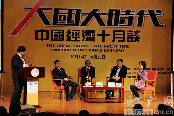 央廣網(wǎng)財經(jīng)北京10月15日消息 由中央人民廣播電臺經(jīng)濟之聲、央廣網(wǎng)財經(jīng)主辦的《大國大時代----中國經(jīng)濟十月談》系列時事報告會第二場在人民大學(xué)舉行。今天的主題是《增長談——大國增長的極限到了嗎?》。人民大學(xué)中國經(jīng)濟改革發(fā)展研究院執(zhí)行院長、經(jīng)濟學(xué)院副院長劉元春,國家發(fā)改委學(xué)術(shù)委員會秘書長張燕生等出席報告會并發(fā)表演講。