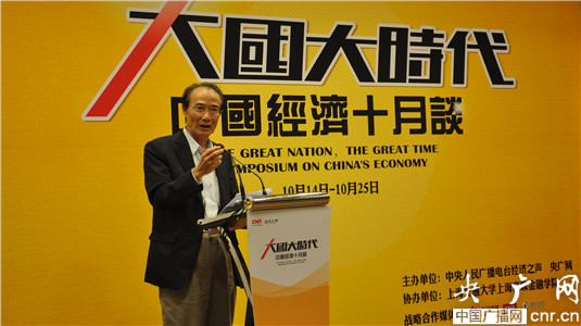 央廣網(wǎng)財(cái)經(jīng)北京10月20日消息 由中央人民廣播電臺(tái)經(jīng)濟(jì)之聲、央廣網(wǎng)主辦的《大國(guó)大時(shí)代----中國(guó)經(jīng)濟(jì)十月談》系列時(shí)事報(bào)告會(huì)第 五場(chǎng)在位于中國(guó)人壽中心的上海交通大學(xué)上海高級(jí)金融學(xué)院舉行。今天的主題是《貨幣談:大國(guó)的錢怎么辦?》。中國(guó)社會(huì)科學(xué)院副院長(zhǎng)李揚(yáng)、國(guó)務(wù)院參事、國(guó)務(wù)院發(fā)展研究中心金融研究所名譽(yù)所長(zhǎng)夏斌、上海交通大學(xué)上海高級(jí)金融學(xué)院副院長(zhǎng)朱寧、上海交通大學(xué)EMBA學(xué)員代表商務(wù)部歐盟處處長(zhǎng)余元堂和《信息早報(bào)》副總編輯張海冰參加了報(bào)告會(huì)并發(fā)表演講。