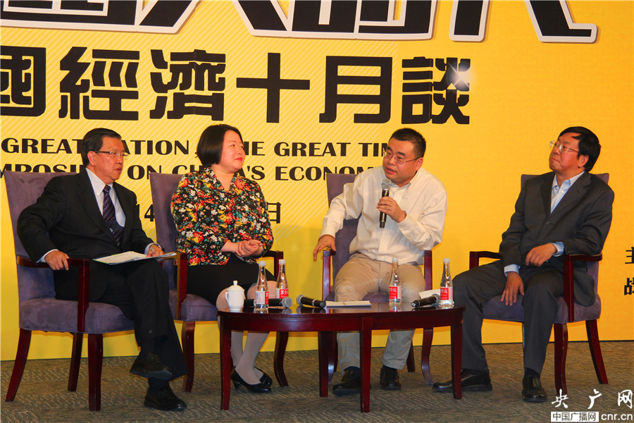 左一:中國入世談判首席談判代表、原博鰲亞洲論壇秘書長 龍永圖;左二:商務(wù)部國際貿(mào)易經(jīng)濟(jì)合作研究院副院長 邢厚媛;右一:經(jīng)濟(jì)之聲代表 楊春陽;右二:《首席財(cái)務(wù)官》雜志出版人兼總編輯 田茂永(央廣網(wǎng) 李靜/攝)