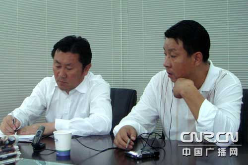 圖為中央臺(tái)記者張四清采訪獐子島漁業(yè)集團(tuán)董事長(zhǎng)吳厚剛