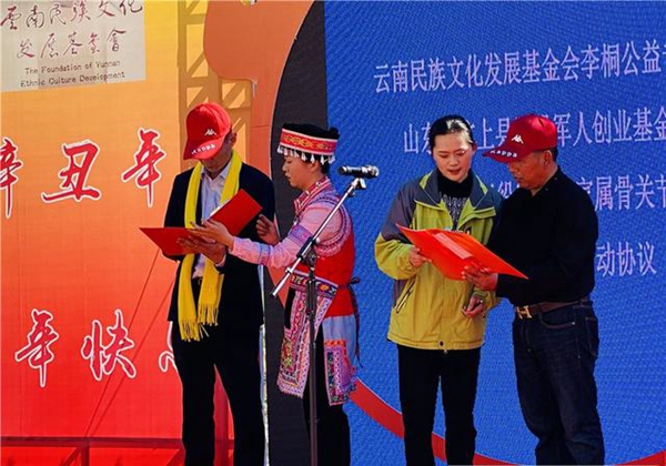 發(fā)布會上,昆明重陽老年病醫(yī)院與大理朵祜堂健康管理有限公司簽署《昆明重陽老年病醫(yī)院托管意向協(xié)議》;山東省濟寧市汶上縣退役軍人創(chuàng)業(yè)基金協(xié)會與云南民族文化發(fā)展基金會李桐公益專項基金簽署《關于開展退役軍人及家屬骨關節(jié)疾病慈善公益關愛活動協(xié)議》;國家發(fā)改委中國投資協(xié)會農(nóng)村農(nóng)業(yè)投資專業(yè)委員會與云南民族文化發(fā)展基金會簽署《朵祜村神醫(yī)谷民族醫(yī)藥產(chǎn)業(yè)助力鄉(xiāng)村振興公益項目研究課題協(xié)議》。
