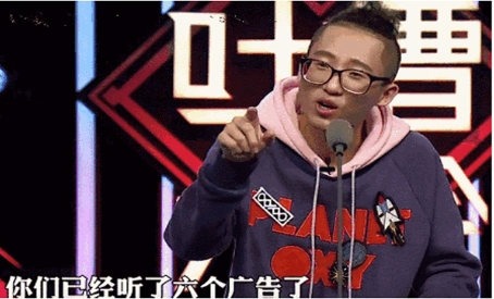 首先,《吐槽大會》將廣告編進(jìn)段子,充分展現(xiàn)了“營銷即內(nèi)容”的魅力。如第一期節(jié)目中李誕用“發(fā)票!蓖虏鄄茉平稹澳隳荛_那種珍藏好多年不褪色的發(fā)票嗎”;第三期節(jié)目中王建國調(diào)侃王祖藍(lán)“你有沒有京都念慈菴川貝蜜煉枇杷高啊?”等橋段,類似為廣告主巧妙定制的段子比比皆是。