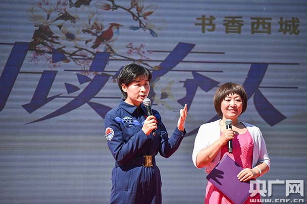 活動現(xiàn)場,西城區(qū)向15個特色閱讀空間頒發(fā)了“西城區(qū)特色閱讀空間”標志牌,還向?qū)阄鞒墙ㄔO有突出貢獻的個人頒發(fā)了“西城區(qū)閱讀朋友”證書。英雄航天員劉洋作為西城區(qū)閱讀朋友上臺領獎,并回答了主持人代表觀眾所提的關于閱讀的問題。