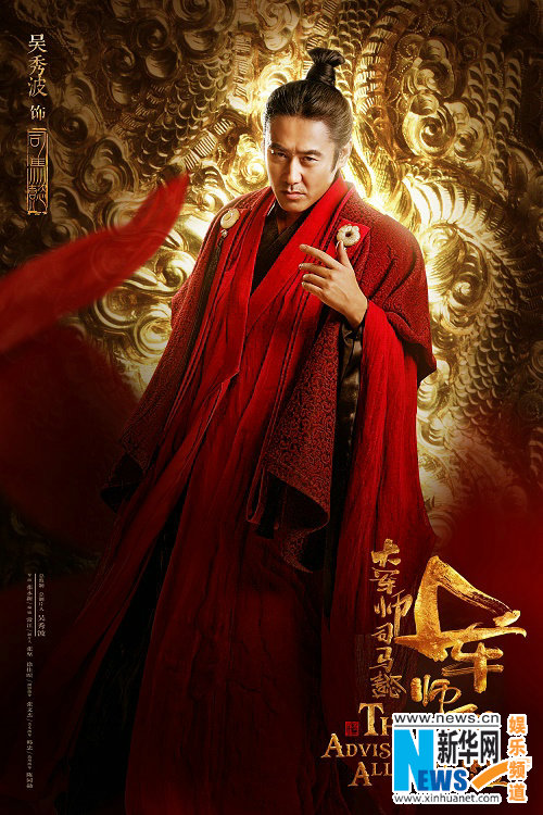 該系列海報(bào)中,唯有吳秀波飾演的司馬懿,李晨飾演的曹丕、劉歡飾演的曹叡,三位男主演的色彩搭配是紅袍配黃金,霸氣奪屏而出。
