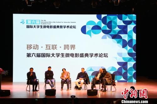 開幕式結(jié)束后,在中國傳媒大學(xué)楊乘虎教授的主持下,第六屆國際大學(xué)生微電影盛典學(xué)術(shù)論壇召開。中國著名紀(jì)錄片導(dǎo)演金鐵木,著名導(dǎo)演焦波,中國傳媒大學(xué)攝影系主任、博士生導(dǎo)師梁明,戛納電影節(jié)、柏林電影節(jié)、克萊蒙費朗國際短片節(jié)、法國電影聯(lián)盟等新技術(shù)影展單元總監(jiān)及選片人、法國3D電影節(jié)主席佛朗索瓦 賽爾四位學(xué)術(shù)專家針對近年微電影事業(yè)的發(fā)展,電影新技術(shù)的應(yīng)用,以及青年電影人的培養(yǎng)進行了頗富哲理性的對話和討論。