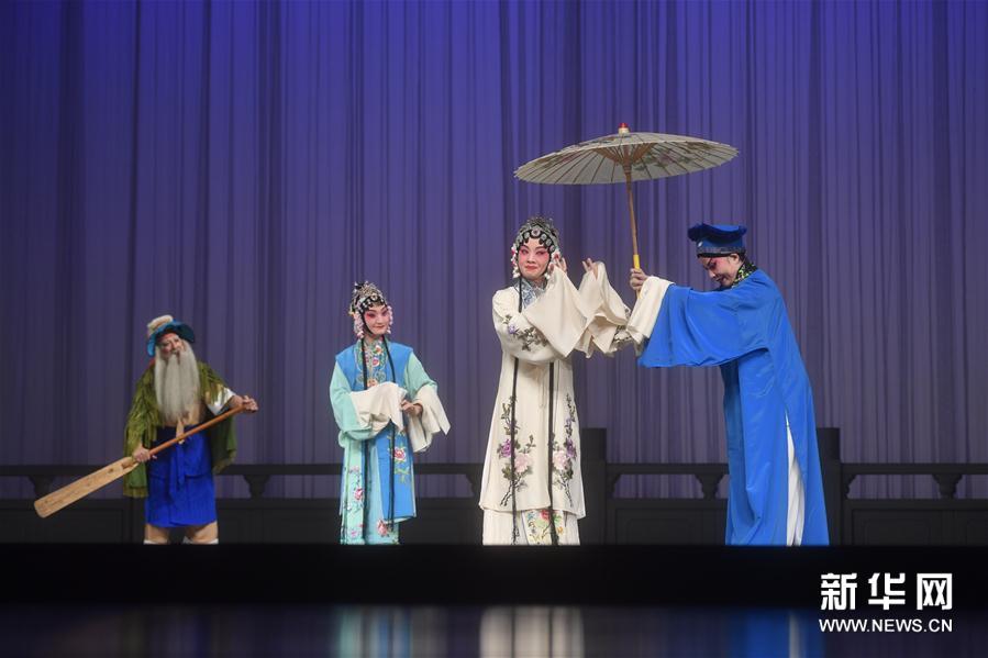 8月29日,演員表演昆曲《白蛇傳·游湖》。當(dāng)日,由中國(guó)對(duì)外文化交流協(xié)會(huì)和中國(guó)對(duì)外文化集團(tuán)公司共同主辦的第十屆中國(guó)國(guó)際青年藝術(shù)周在北京閉幕,香港京昆表演藝術(shù)家鄧宛霞攜手著名京劇表演藝術(shù)家李玉聲、昆曲表演藝術(shù)家陸永昌,為觀眾上演京昆劇目專場(chǎng)。本屆青年藝術(shù)周共有來自中國(guó)、美國(guó)、俄羅斯等36個(gè)國(guó)家和地區(qū)的115臺(tái)中外優(yōu)秀節(jié)目與觀眾見面。新華社記者金良快攝 -