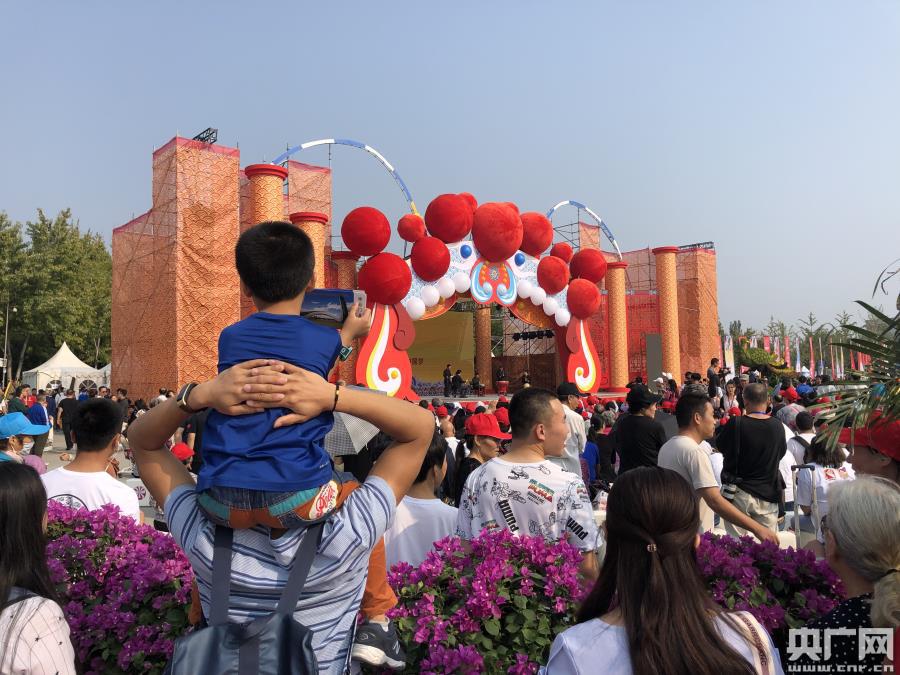 10月2日,2019中國(guó)戲曲文化周在北京園博園盛大開幕,此次活動(dòng)吸引了大量游客前來(lái)觀賞。圖為2019中國(guó)戲曲文化周在北京園博園3號(hào)門中心舞臺(tái)舉辦了開幕式。圖為游客觀看開幕式。(央廣網(wǎng)記者 方永磊 攝)