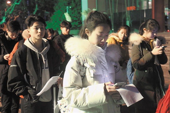 考生在夜幕下備考