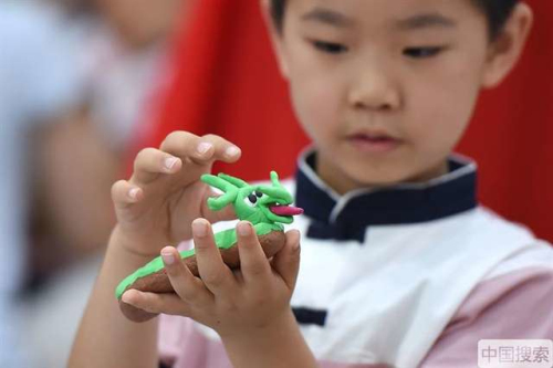 2019年6月4日,北京龍?zhí)督值馈靶∈之孆堉蹅鞒写髩粝搿倍宋绻?jié)主題活動(dòng)在東城區(qū)崇文第三幼兒園舉行,F(xiàn)場邀請(qǐng)非遺面塑專業(yè)教師向少年兒童講授非遺面塑專業(yè)知識(shí)及操作技法,為了讓孩子更生動(dòng)的了解端午,老師準(zhǔn)備了非遺面塑的材料,孩子們自己挑選材料,自己設(shè)計(jì)龍頭,親手感觸面人,并操作經(jīng)手工捏,搓,揉,掀等面塑工序制作端午龍舟,在實(shí)踐中塑造“賽龍舟”的熱鬧景象。