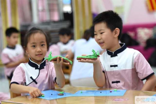2019年6月4日,端午節(jié)將至,北京東城區(qū)崇文第三幼兒園少年兒童自己挑選材料,自己設(shè)計(jì)龍頭,親手感觸面人,并操作經(jīng)手工捏,搓,揉,掀等面塑工序制作端午龍舟,在實(shí)踐中塑造“賽龍舟”的熱鬧景象,體會(huì)傳統(tǒng)節(jié)日意義。
