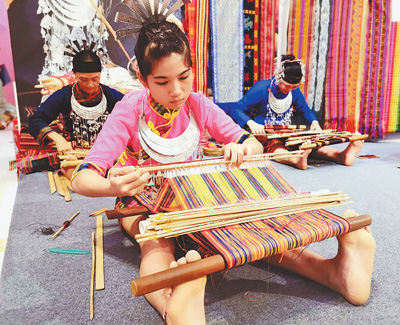 2019年文化和自然遺產(chǎn)日非遺主會場活動現(xiàn)場展示的黎族傳統(tǒng)紡染織繡技藝