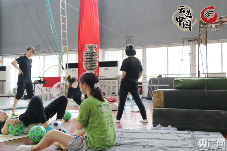 在武漢雜技團訓(xùn)練室,演員們正在訓(xùn)練。(央廣網(wǎng)實習(xí)記者 王可佳 攝)