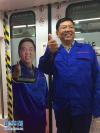 5月1日,全國勞動模范楊遠柱在“勞模地鐵專列”內(nèi)與自己的肖像照片合影。 “五一”勞動節(jié)期間,一列“勞模地鐵專列”亮相長沙地鐵1號線。該列車在車廂內(nèi)集中展示了由全國勞模、攝影家謝子龍拍攝的88位不同崗位全國勞模的肖像作品,旨在展示“勞動最光榮、勞動最崇高、勞動最偉大、勞動最美麗”的精神。新華社記者 明星 攝