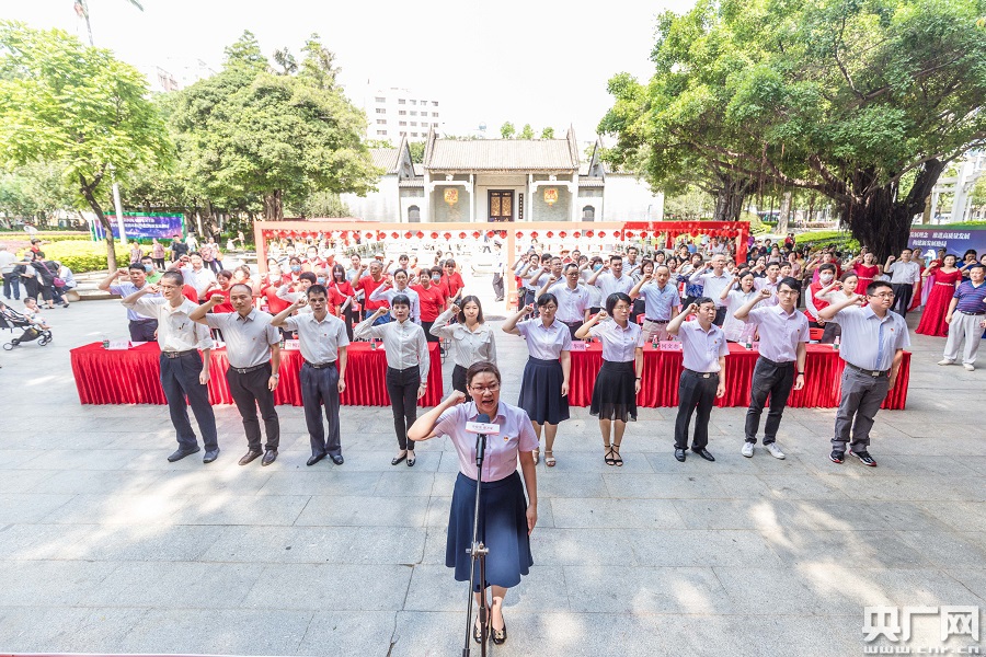 啟動(dòng)儀式在全場黨員高舉右手重溫入黨誓詞的莊嚴(yán)氛圍中開始。(央廣網(wǎng)發(fā) 王偉楠攝)