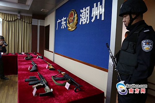 據(jù)南方網(wǎng)報(bào)道,3月17日,筆者從潮州市公安局獲悉,經(jīng)過(guò)近2個(gè)月的縝密偵查,潮州市公安機(jī)關(guān)成功打掉一個(gè)特大非法買(mǎi)賣(mài)、持有槍支彈藥犯罪團(tuán)伙,抓獲團(tuán)伙成員4名,繳獲各類(lèi)槍支14枝、半成品手槍3支、其他槍支配件及子彈一批。這是近20年來(lái),潮州一次性繳獲槍支數(shù)量最多的一次。