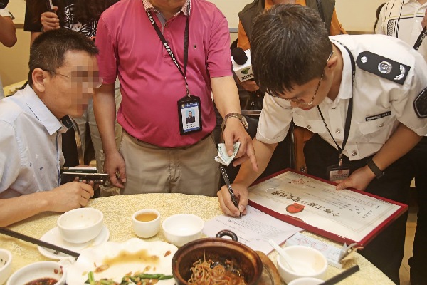 8日晚上7點(diǎn)準(zhǔn),督查人員就隨機(jī)抽查羅湖區(qū)鳳凰鳳山大廈附近餐飲服務(wù)場(chǎng)所控?zé)熐闆r。這個(gè)點(diǎn)正是用餐的高峰期,對(duì)于執(zhí)法人員的突然"殺到",餐館工作人員及用餐者都感到有些詫異有些緊張。執(zhí)法人員以最快的速度,最尖銳的眼力巡查餐館的每一個(gè)角落。突擊檢查的前兩家餐館香港新發(fā)燒臘餐館(黃貝嶺店)和巴蜀風(fēng)都未發(fā)現(xiàn)有人抽煙,整體情況良好。